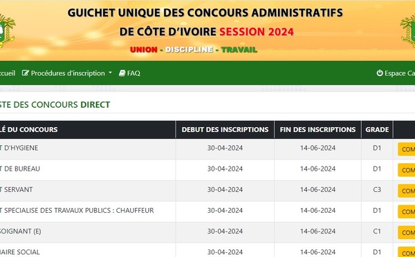 Les autorités ivoiriennes préparent les concours de la fonction publique 2026 et l'entrée à l'ENA 2027. Des centaines d'opportunités en perspective pour les jeunes diplômés.