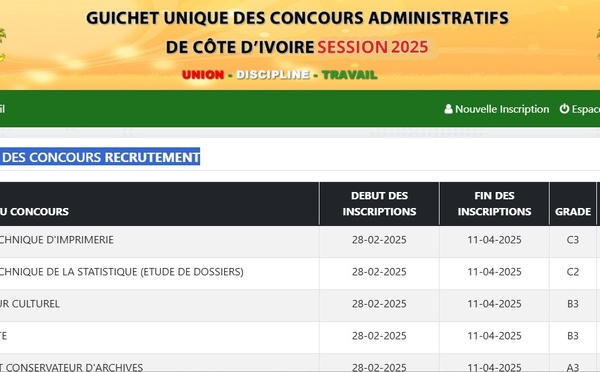 Concours administratifs 2025 en Côte d'Ivoire : convocations disponibles ce 20 mai