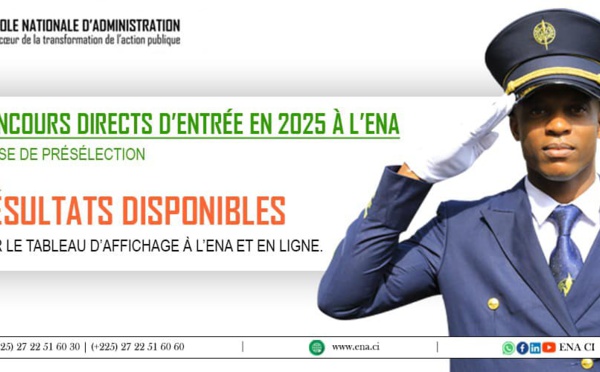 Résultats ENA 2025 en Côte d'Ivoire : Le concours pour intégrer l'École Nationale d'Administration a livré son verdict ce samedi 10 août 2024. Retrouvez la liste des admissibles du premier tour.