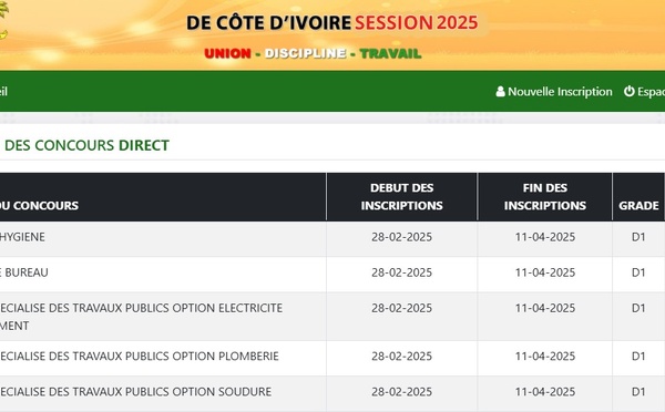 Lancement des concours Fonction publique 2026 en Côte d'Ivoire : date des inscriptions dès ces prochains jours sur les sites officiels. Consultez le calendrier complet.