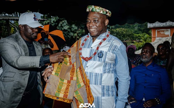 Ahoua Don Mello a rencontré le 16 octobre 2025 les rois de Krindjabo et Ayamé lors de sa campagne à Aboisso pour la présidentielle en Côte d'Ivoire.