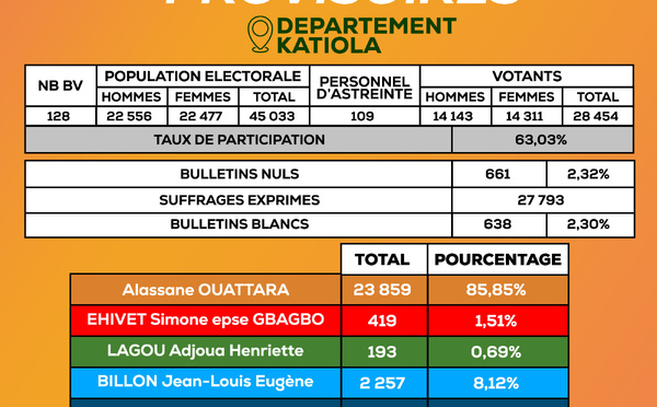 La CEI proclame les résultats provisoires de Kong, Sakassou, Dabakala, Ouangolodougou et Katiola pour l'élection présidentielle du 25 octobre 2025 en Côte d'Ivoire.