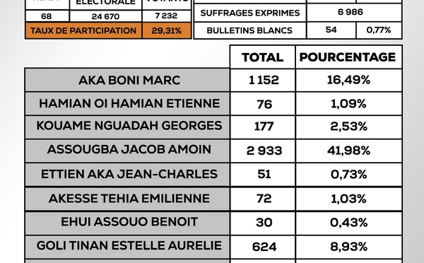 Résultats Législatives à Bongouanou 2025 : Assougba Jacob Amoin s'impose largement