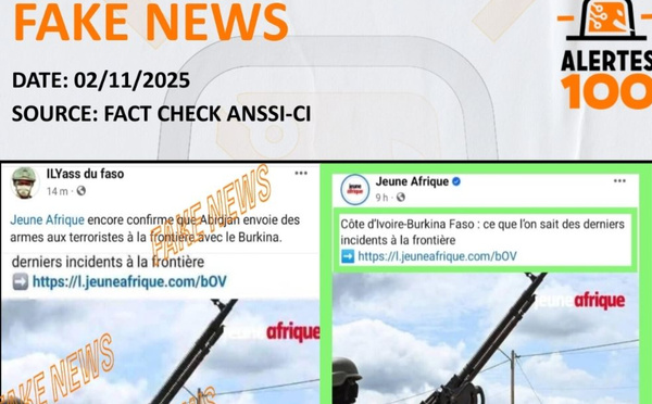 "Livraisons d'armes d'Abidjan aux terroristes", Alertes 100 dénonce une fake news attribuée à Jeune Afrique