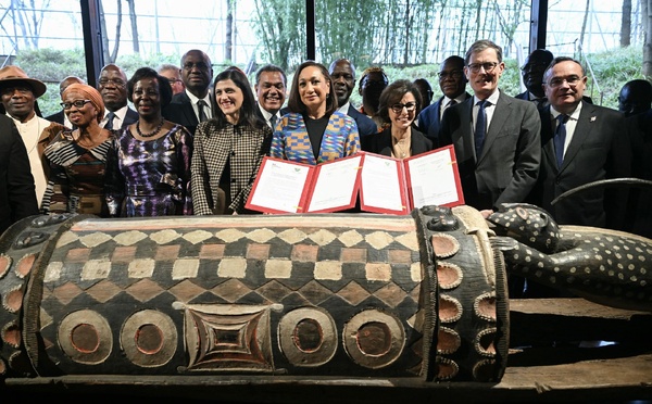 Après 110 ans, le tambour parleur Djidji Ayokwè restitué à la Côte d'Ivoire le 20 février 2026 à Paris. Un acte historique signé entre Abidjan et Paris au quai Branly.