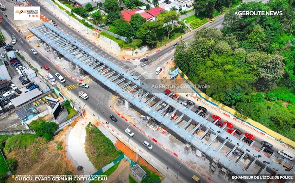 L'échangeur du Carrefour de l'École de Police à Abidjan affiche 66% d'avancement au 17 février 2025. Pose des équipements annoncée comme prochaine étape. Sa mise en circulation attendue par les Ivoiriens.