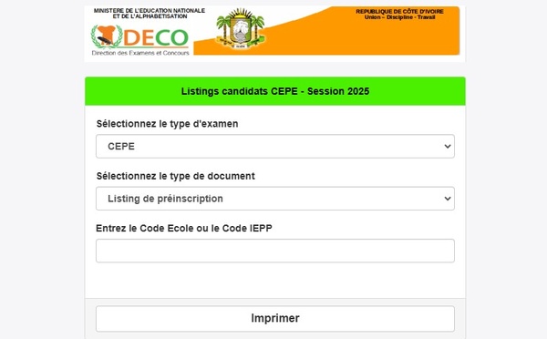 Le site officiel pour les résultats CEPE 2025 en Côte d'Ivoire est www.men-deco.org. Découvrez le taux de réussite et la liste des admis.
